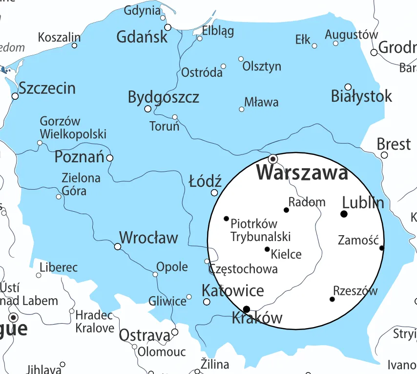 Najczęściej dokonujemy montażu balustrad w poniższych miastach, ale nie ograniczamy się tylko do nich - obok mają Państwo mapę obszaru montażu barierek balkonowych i ogrodzeń. Jeśli są Państwo blisko promienia koła montażu to zapraszamy do kontaktu, może będziemy w stanie pomóc.